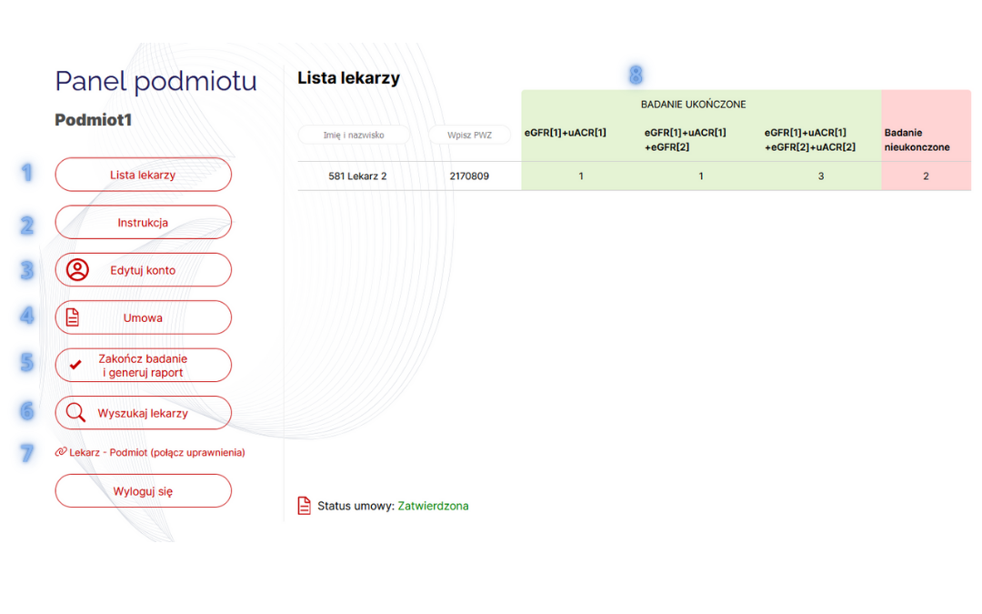 Informujemy także, że lekarze mogą wprowadzać dane pacjentów jeszcze przed podpisaniem umowy przez przedstawiciela podmiotu medycznego, do którego zostali przypisani. Zaznaczamy jednak, że w celu otrzymania wypłaty wynagrodzenia i rozliczenia, konieczne jest posiadanie podpisanej i zatwierdzonej umowy.
